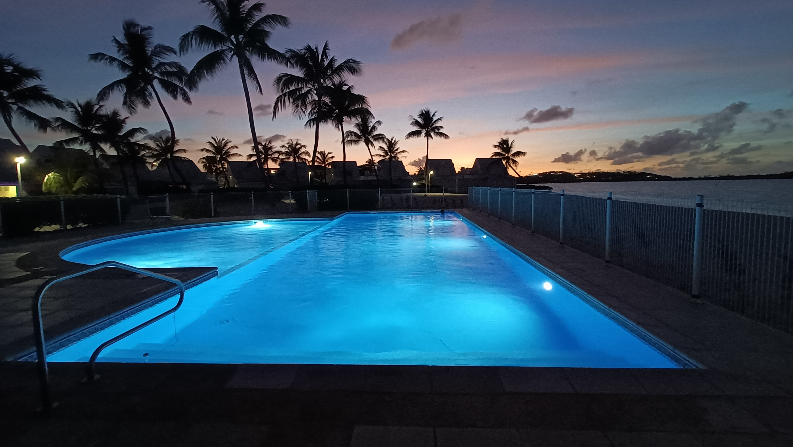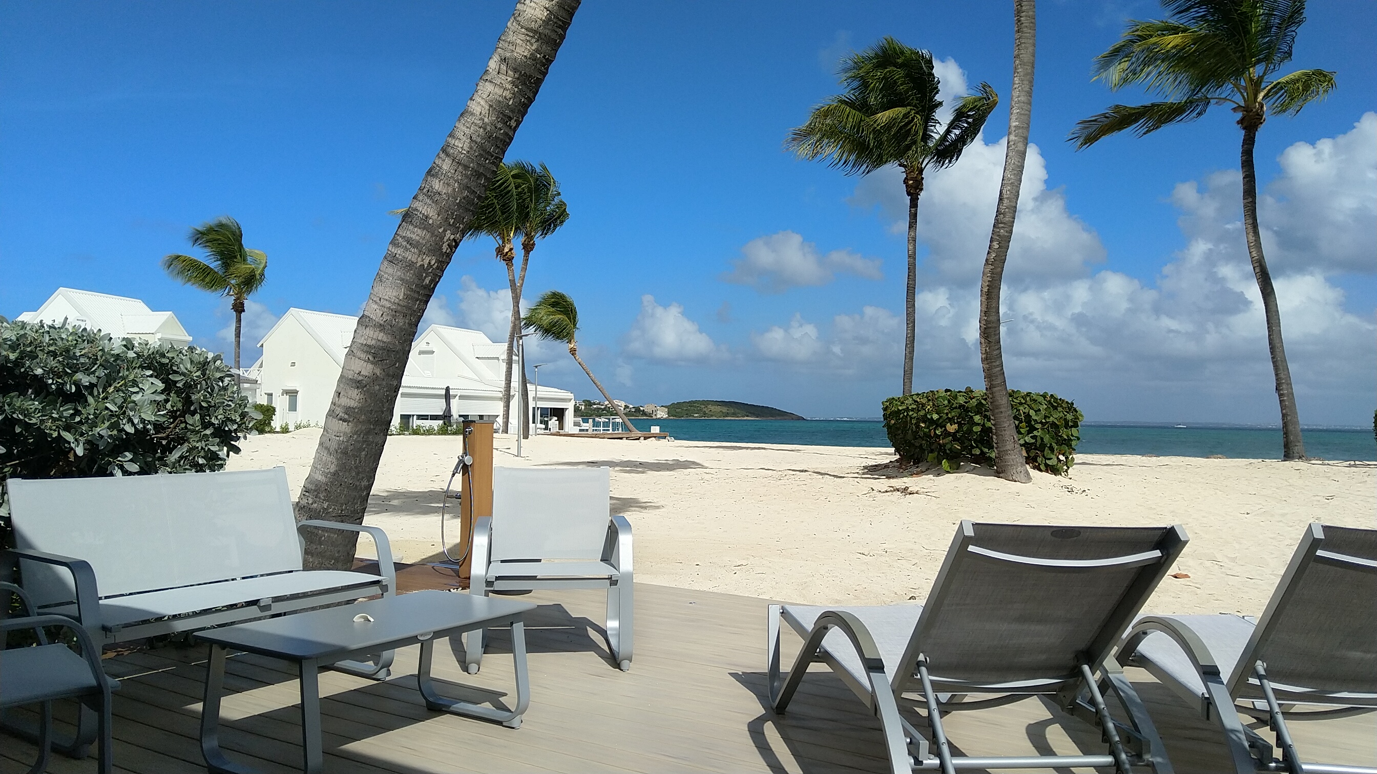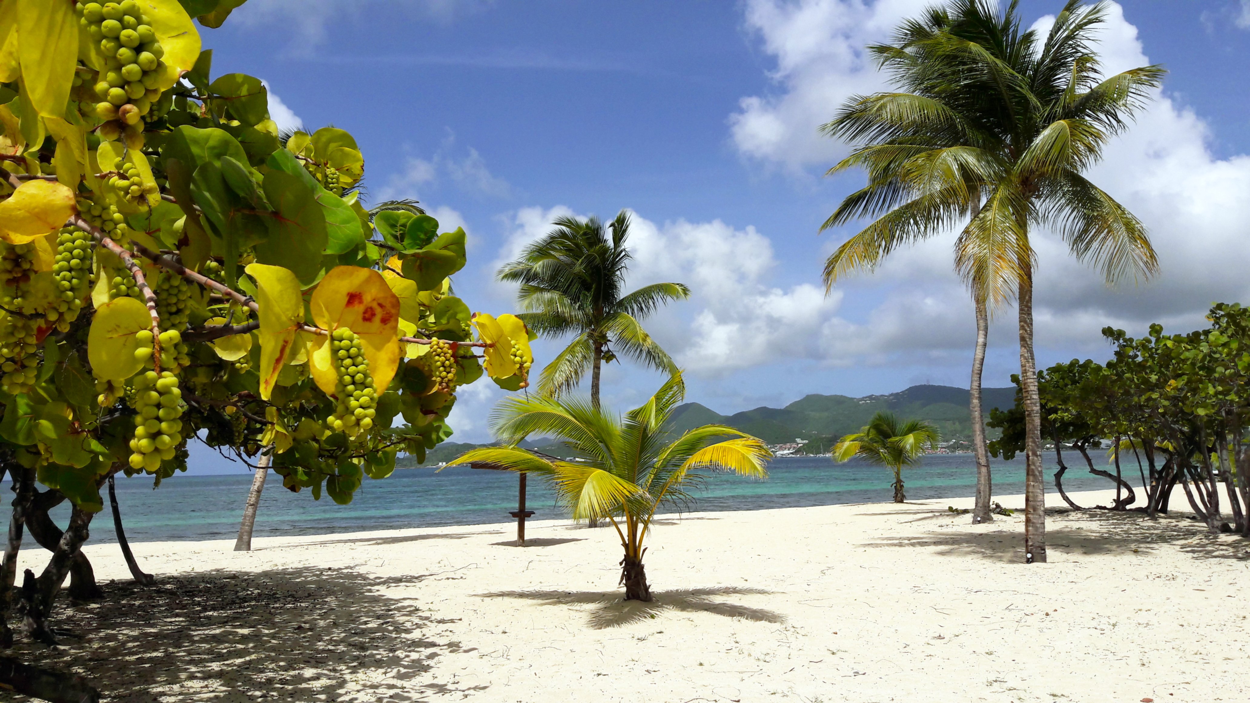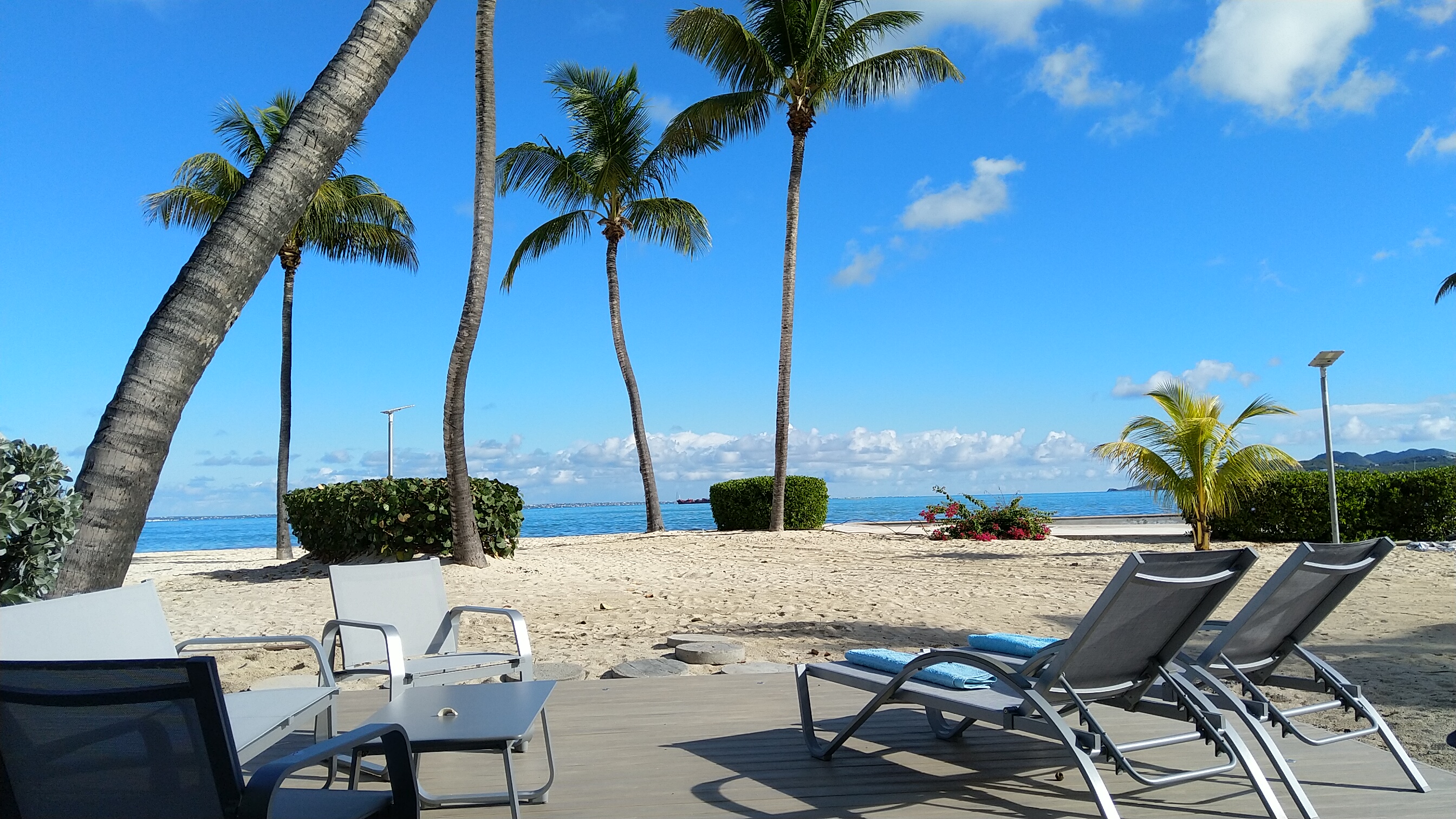 Face à la mer, votre maison duplex sur la plage de Baie Nettlé, comprend un total de 7 couchages, un grand salon/cuisine, une salle à manger sous la terrasse couverte, deux chambres, deux salles de bains, WC, solarium à l'étage et deck sur le sable...
